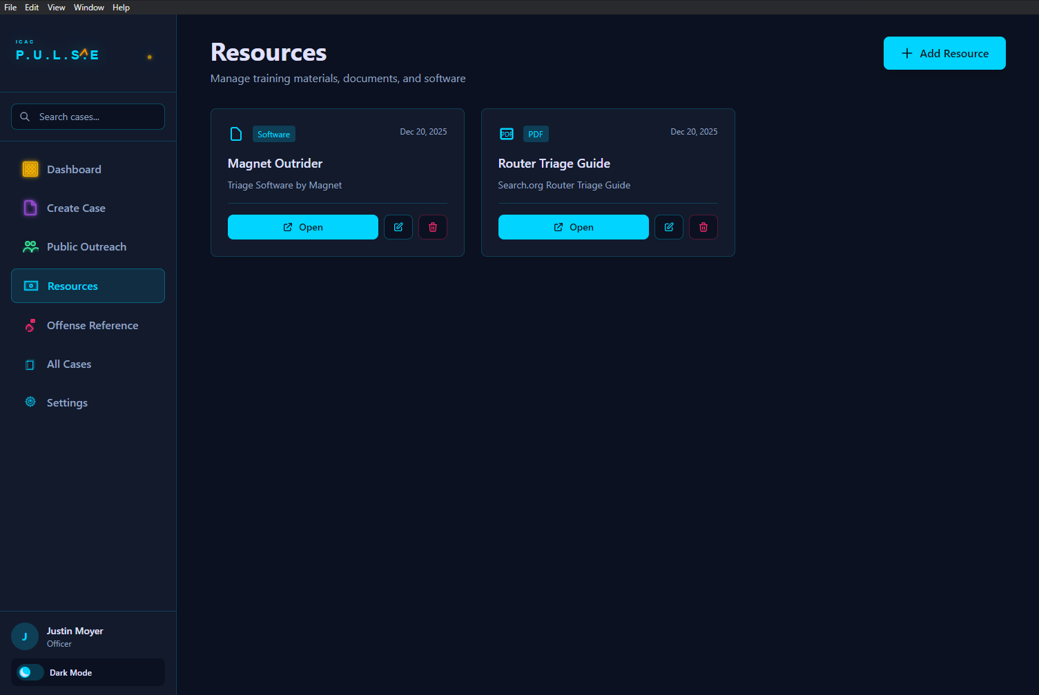 P.U.L.S.E. is designed exclusively as a desktop application, ensuring all sensitive case data is stored locally and offline. This architecture eliminates the stress of cloud storage, removes the risk of external data breaches, and guarantees constant access to your evidence—even without an internet connection.